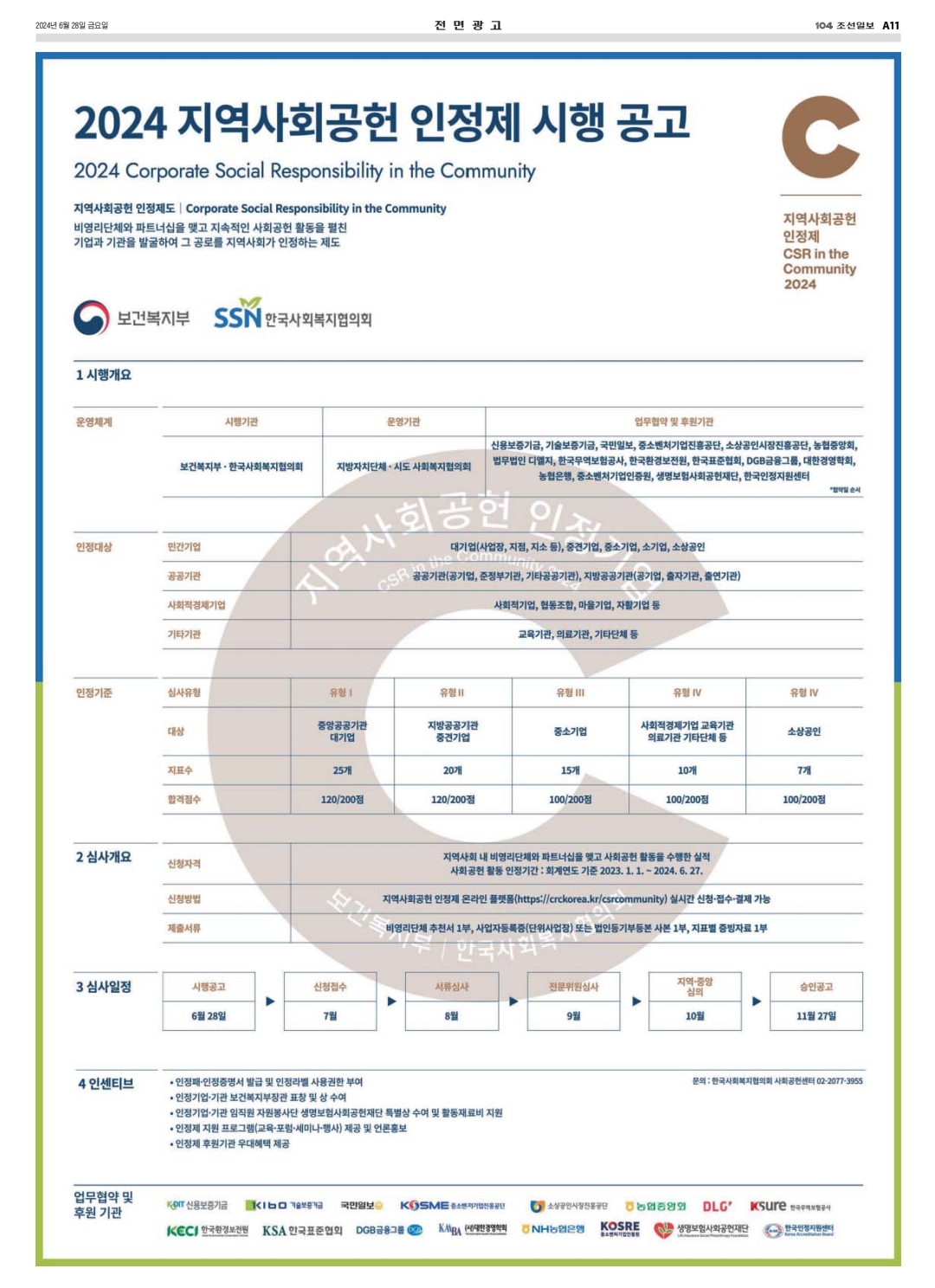 2024년 6월 28일 지역사회공헌 인정제 시행공고입니다.