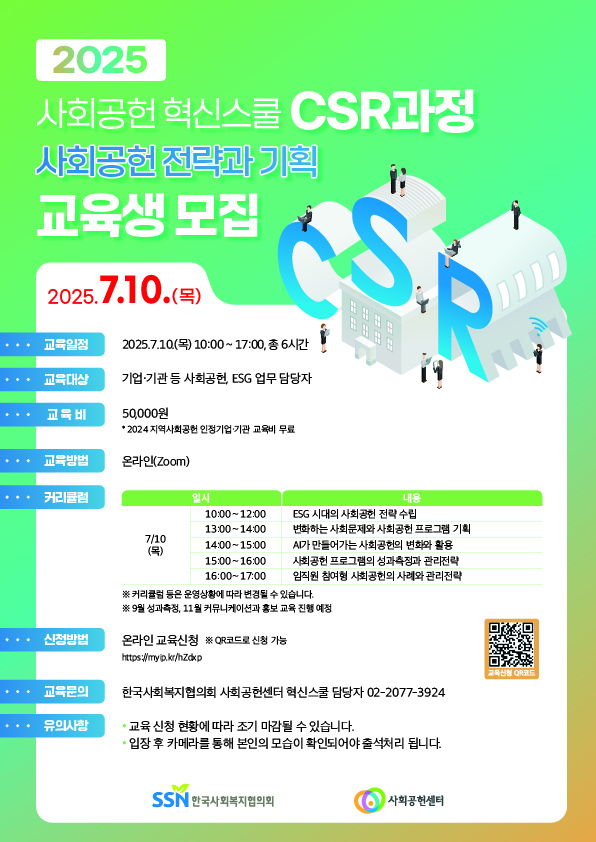 [안내] 2025 사회공헌 혁신스쿨-CSR과정(사회공헌 전략과 기획) 교육생 모집 안내(~7.8)